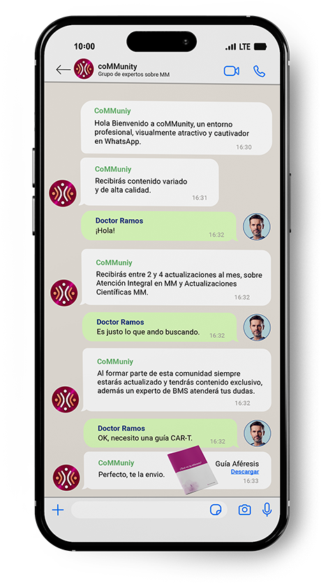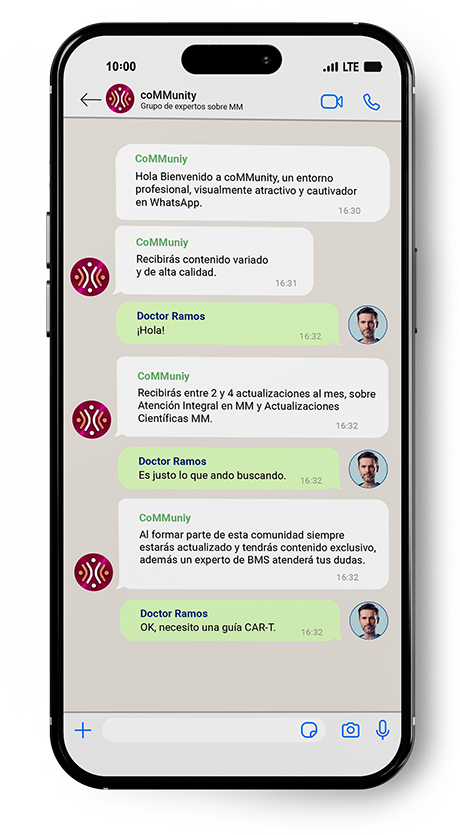 Únete a una comunidad innovadora integrada por profesionales especializados en mieloma múltiple.